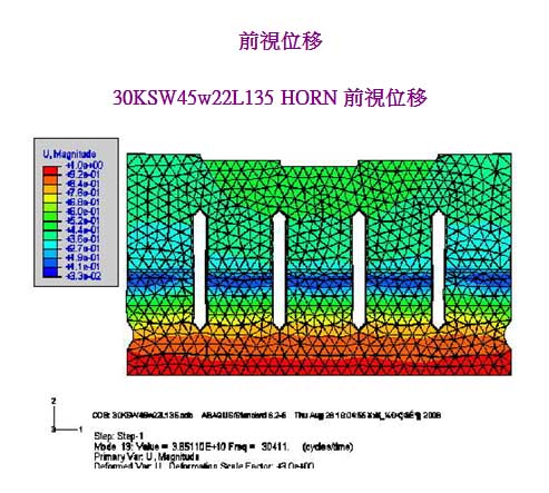 利用有限元分析软件模拟分析设计超声波焊头模具,利用这种方法找出合适的超声波模具的设计方式,合适的振幅分布及少的应力影响,在一些特殊之应用,除了HORN (超声波焊头) 要考虑外,其他连要熔接之塑料工件,甚至底座也要分析,透过这些应用,不仅超声波焊头 (HORN)之寿命延长,熔接质量也大幅提升。一起学习超声波焊接知识。