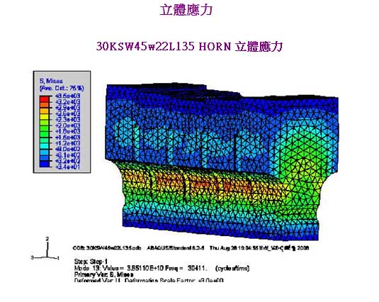 利用元素内之插值函数,可得元素内任何位置之应力、应变与变位超音波喇叭(HORN)有限元素分析展开